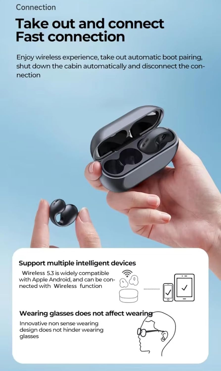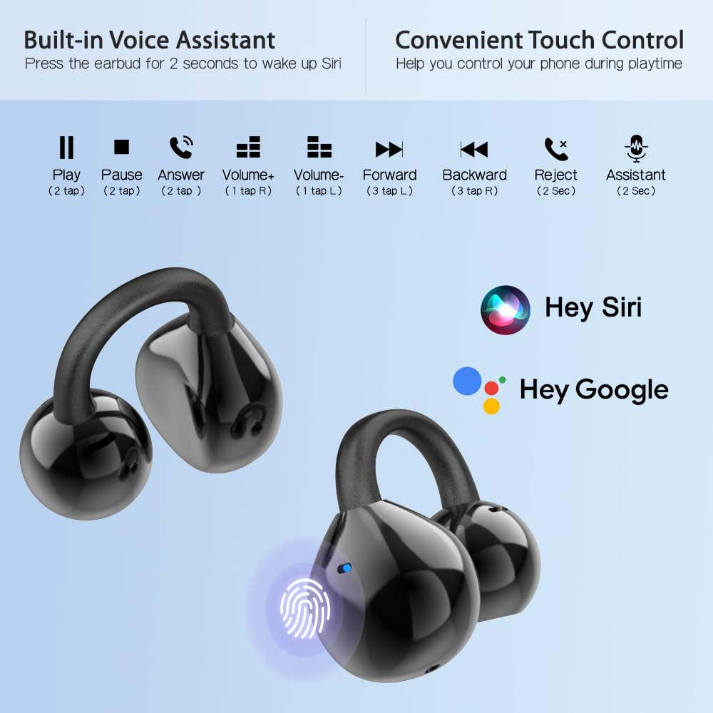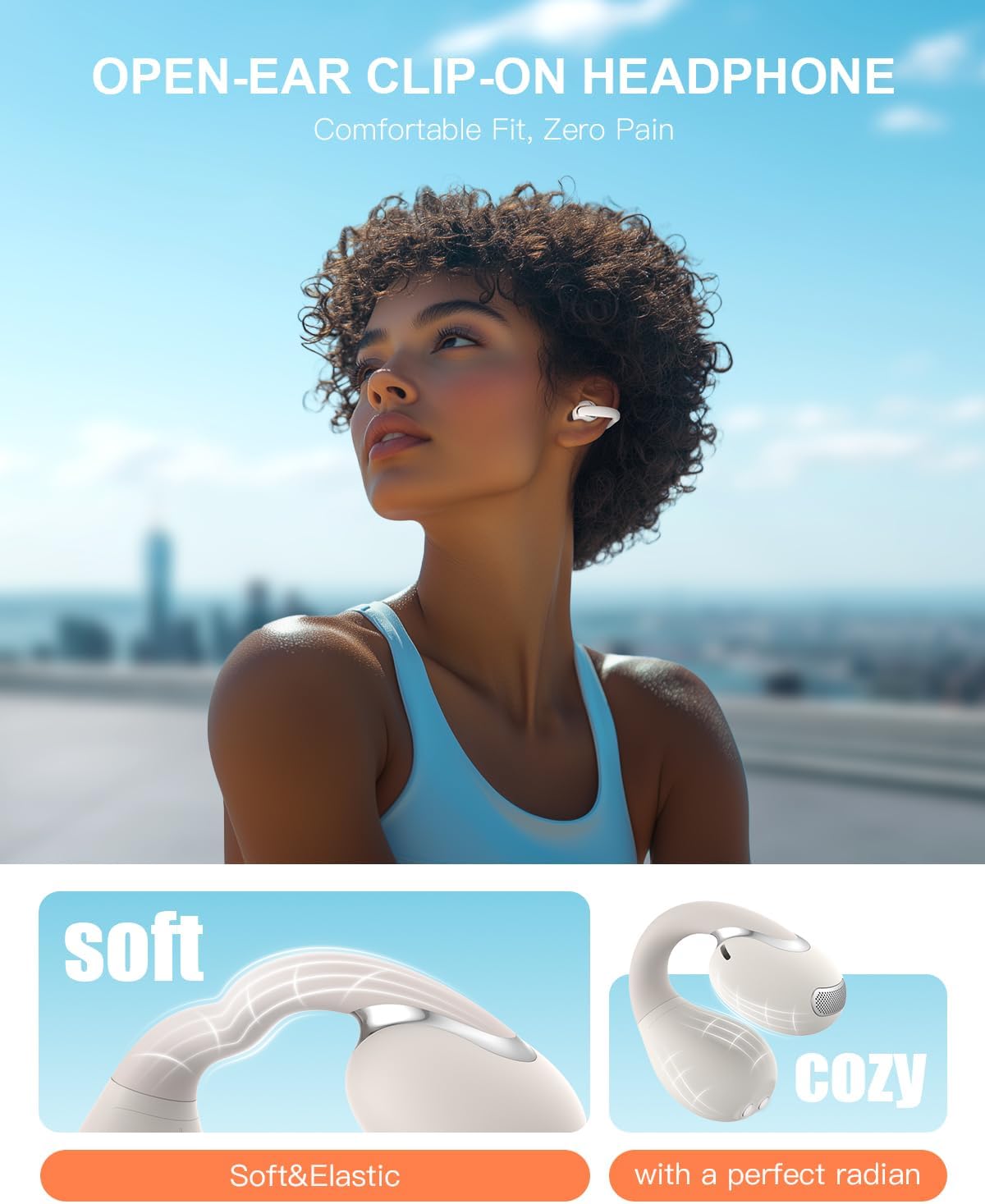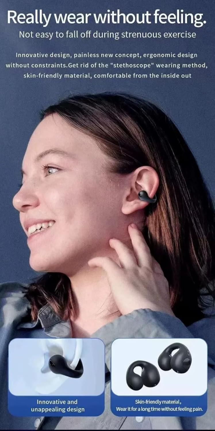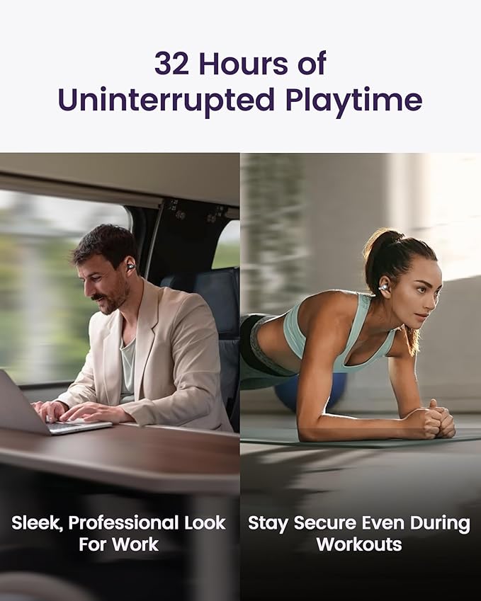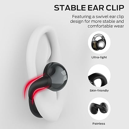 The ear-clip design offers a secure, gentle fit for all-day comfort, whether at work or the gym.